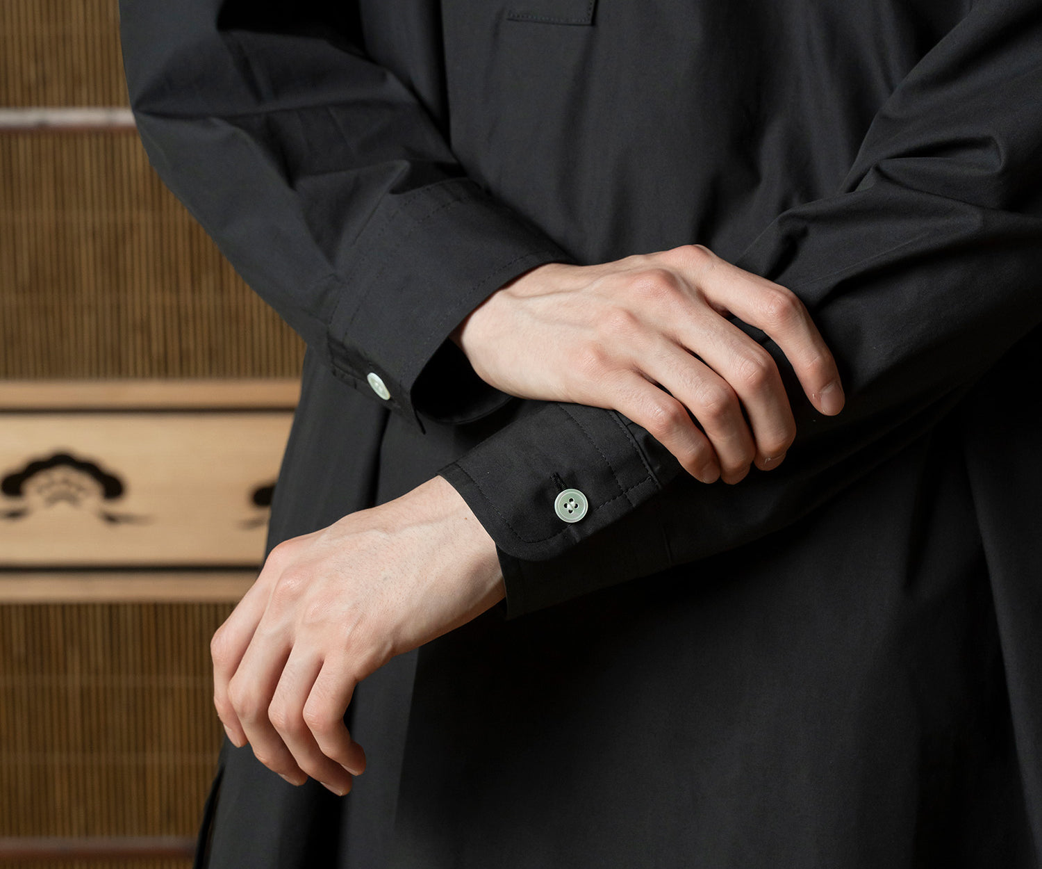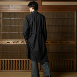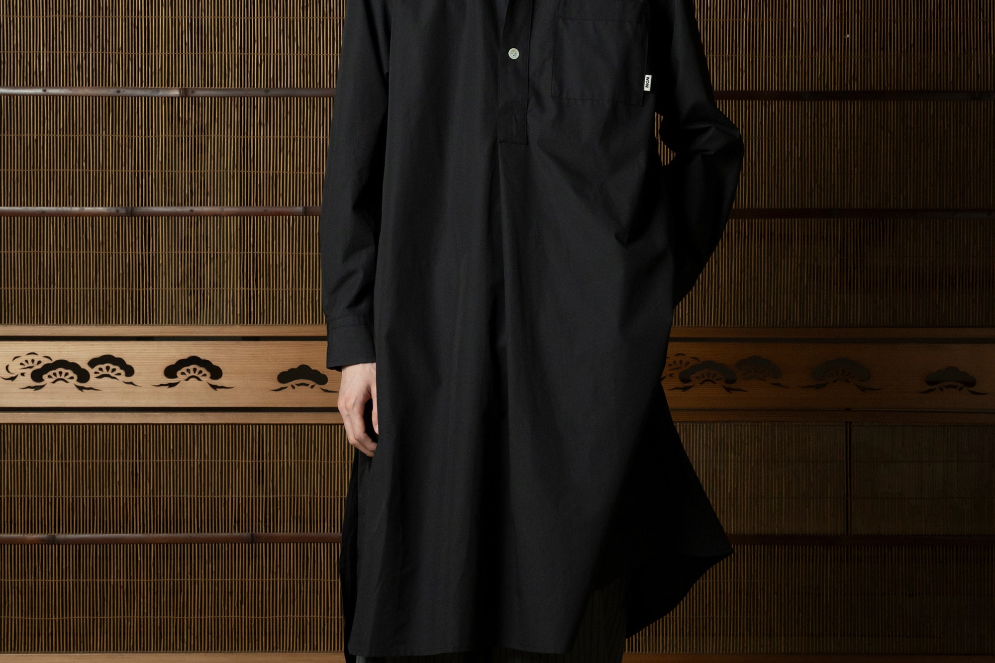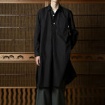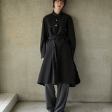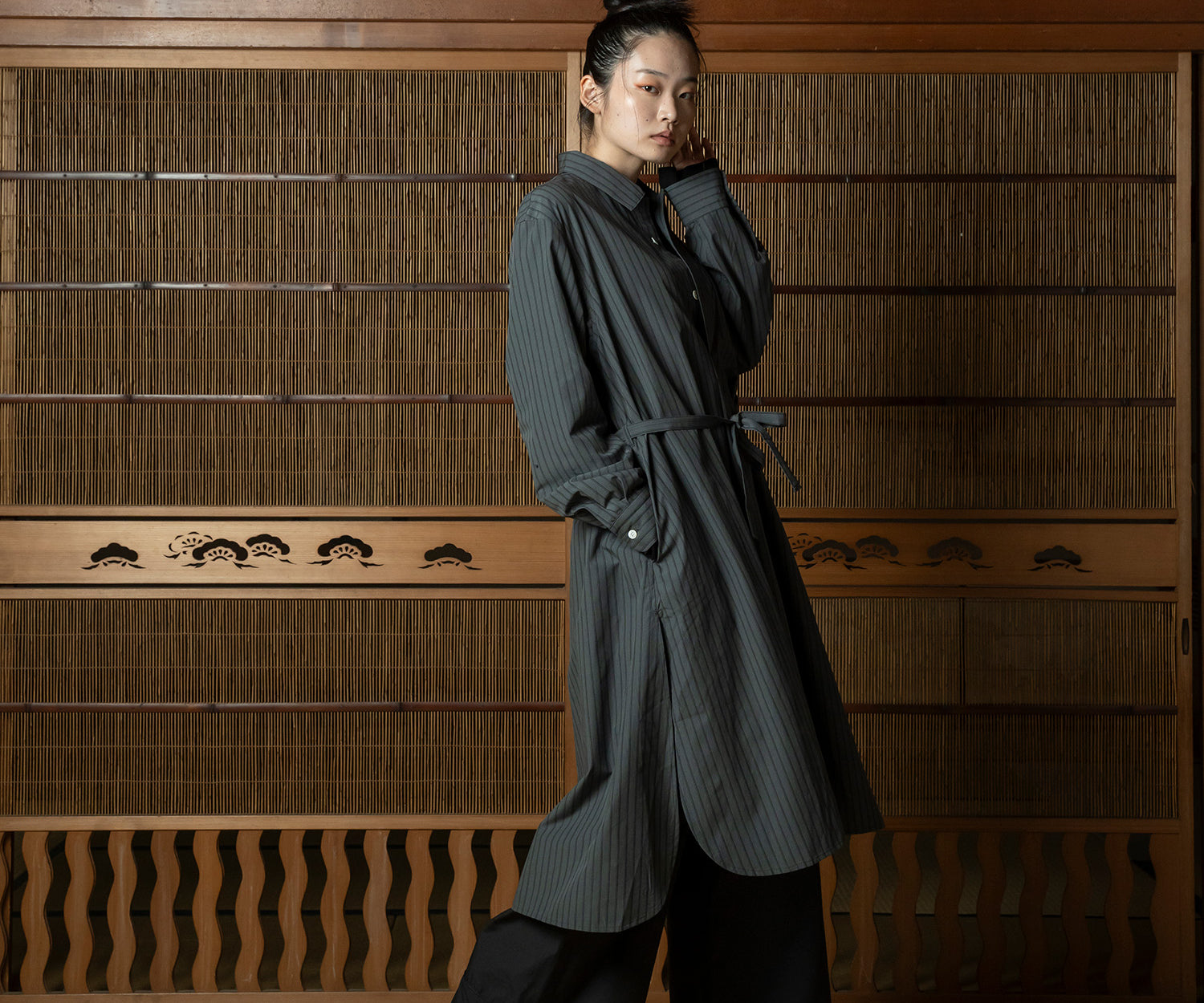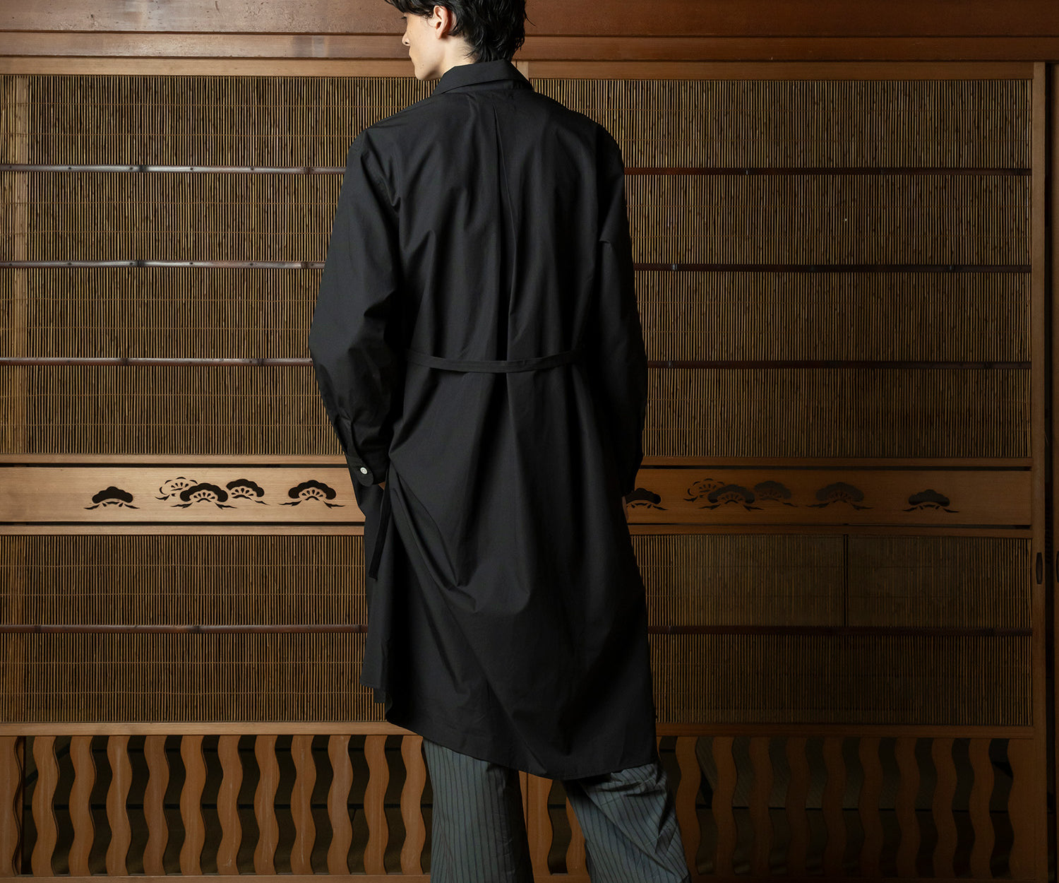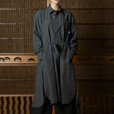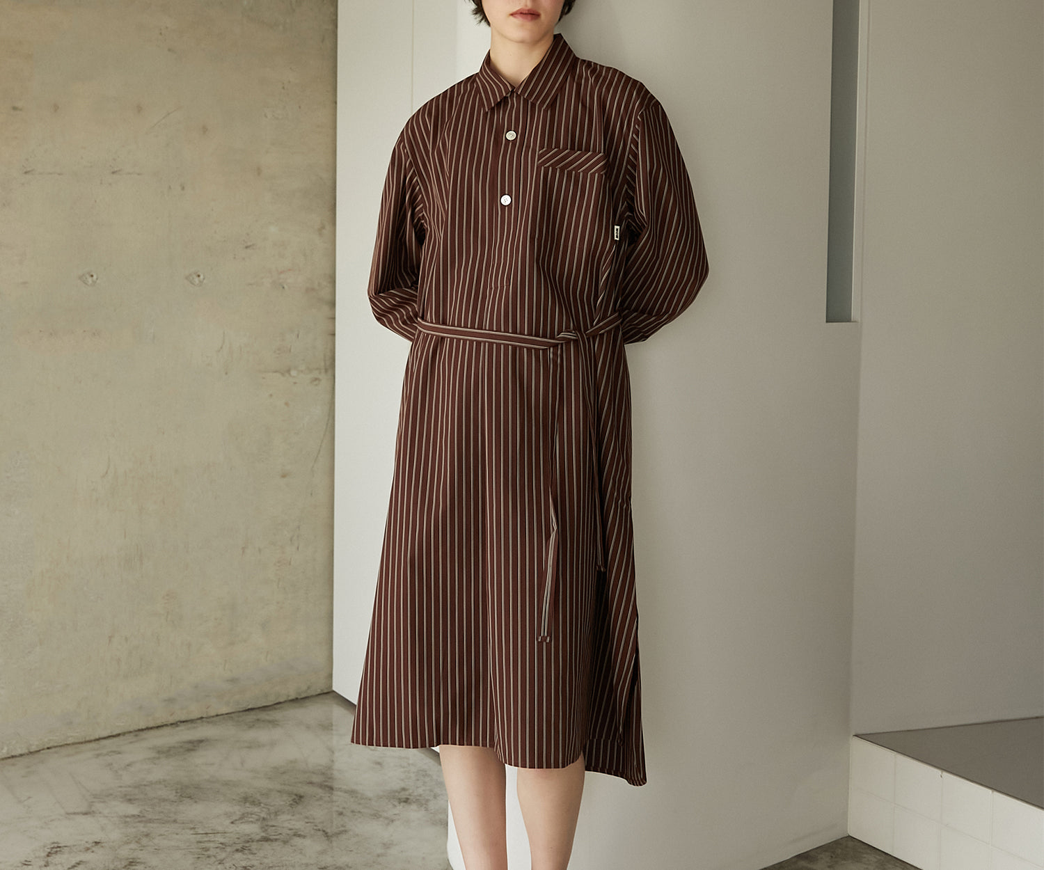 ブランド初のロングシャツ。シルエットは裾に向けて大きく広がるAラインシルエットになっており、1枚で存在感のあるコーディネートが可能。長めに設計された丈感なので、女性だけでなく男性もカジュアルウェアとしても着用可能です。腰元には紐が付属しているので、気分やコーディネートに合わせてシルエットの調整ができ色々な着こなし方ができるアイテムです。