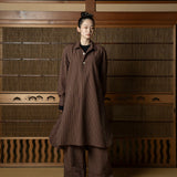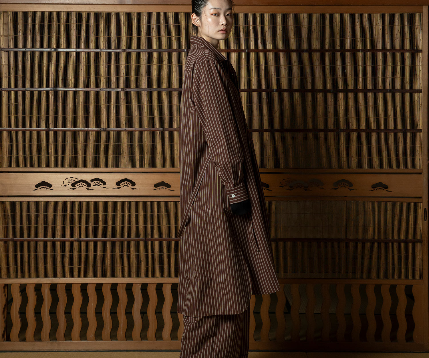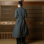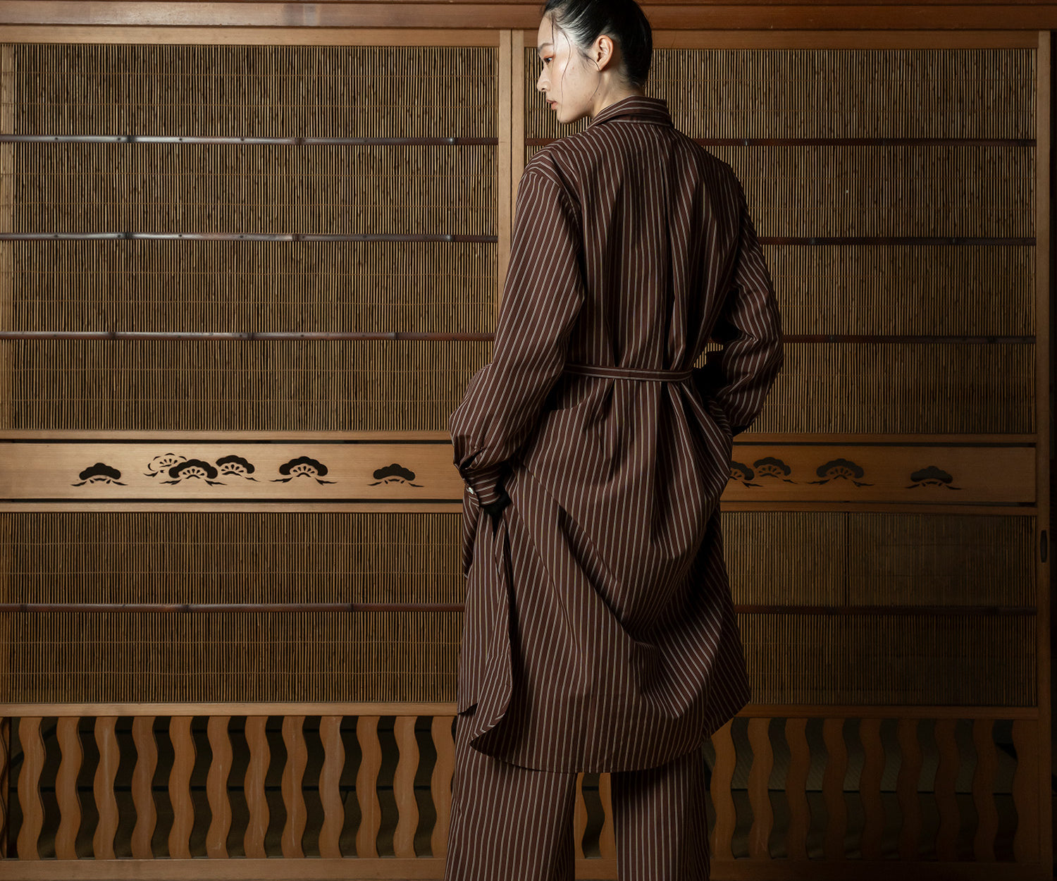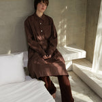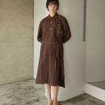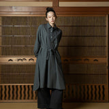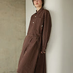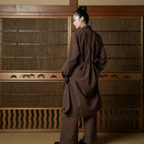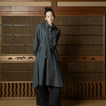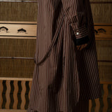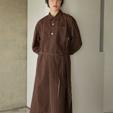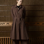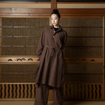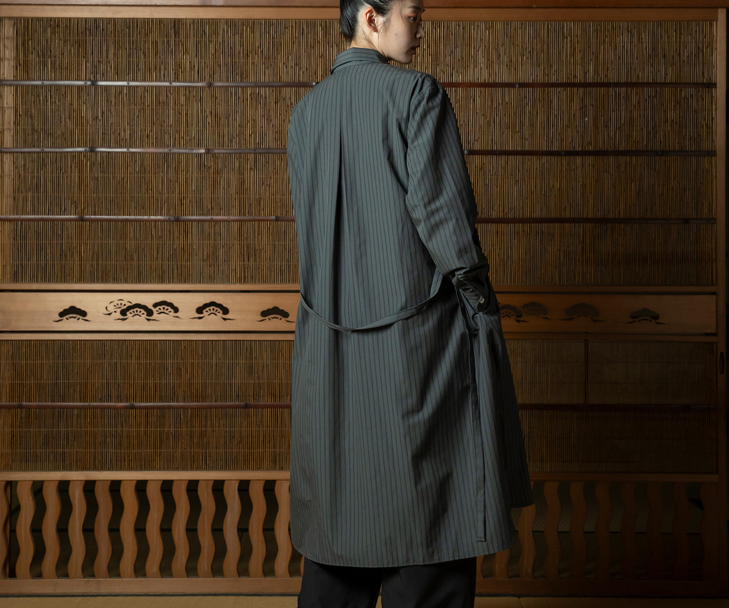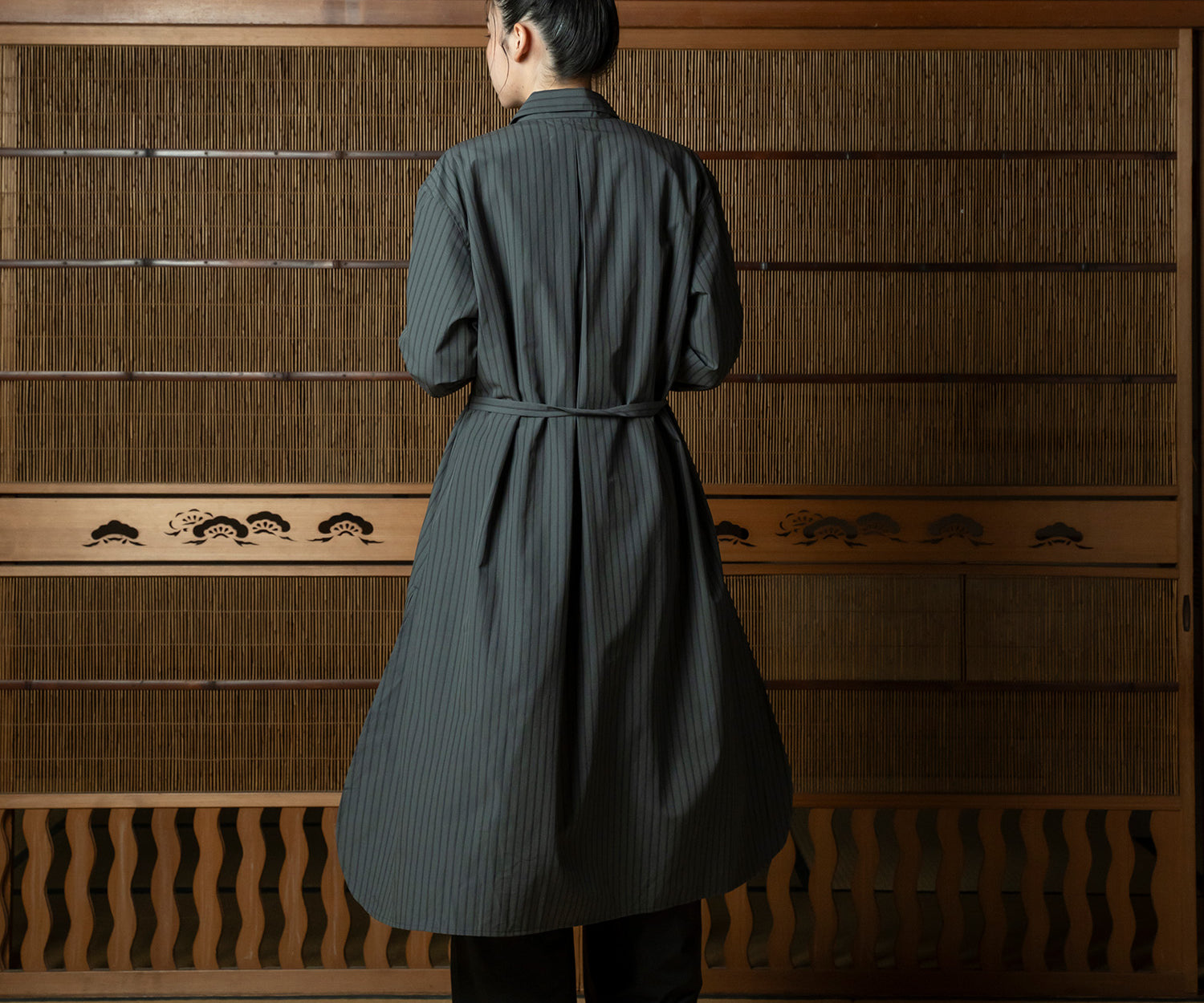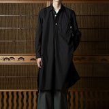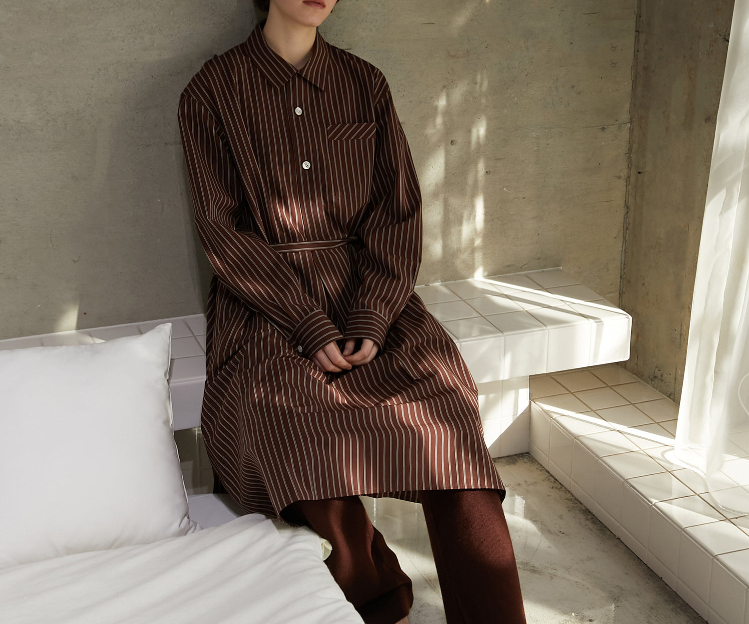 ブランド初のロングシャツ。シルエットは裾に向けて大きく広がるAラインシルエットになっており、1枚で存在感のあるコーディネートが可能。長めに設計された丈感なので、女性だけでなく男性もカジュアルウェアとしても着用可能です。腰元には紐が付属しているので、気分やコーディネートに合わせてシルエットの調整ができ色々な着こなし方ができるアイテムです。