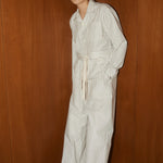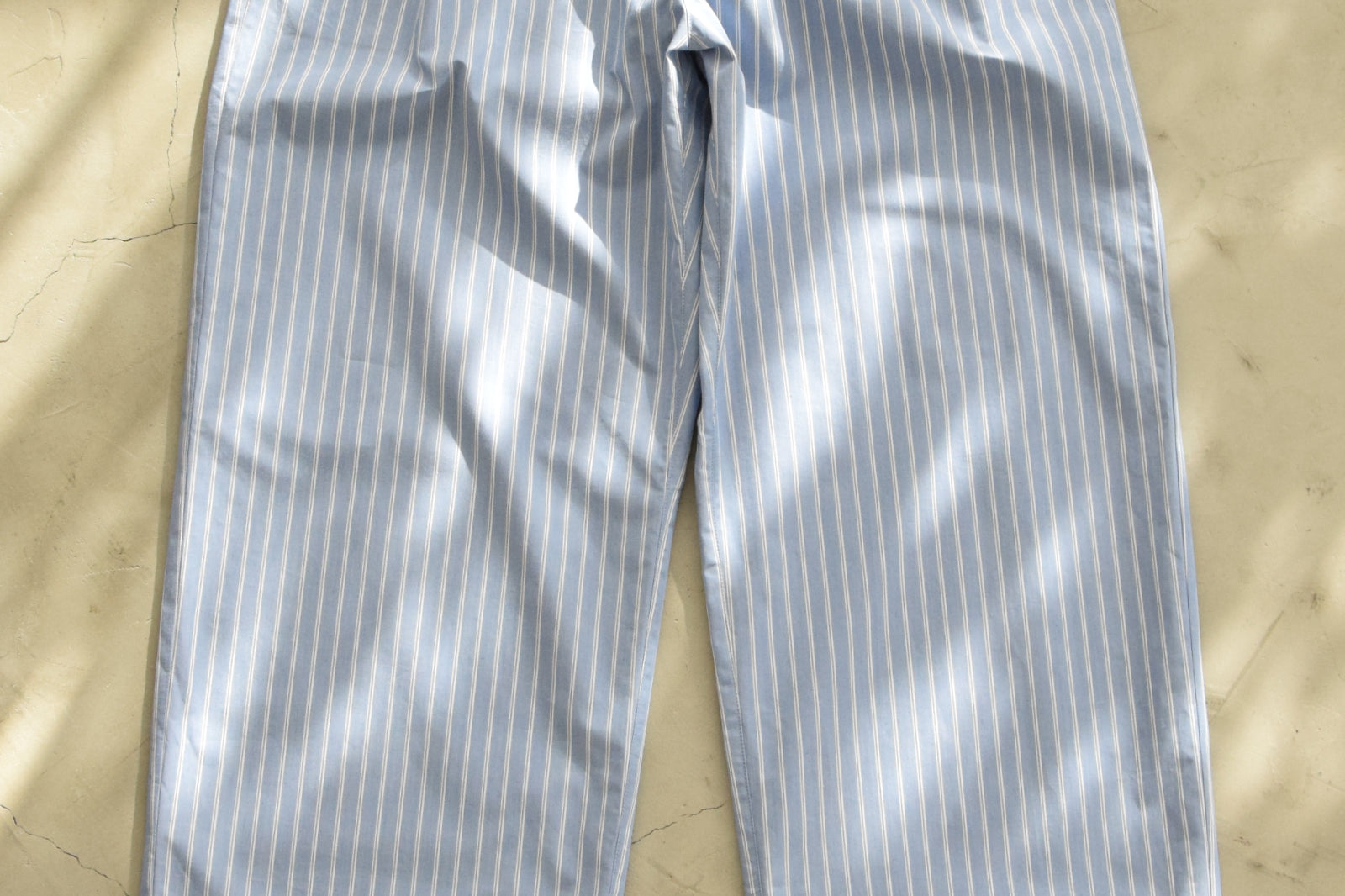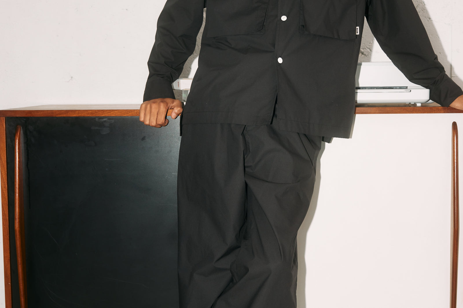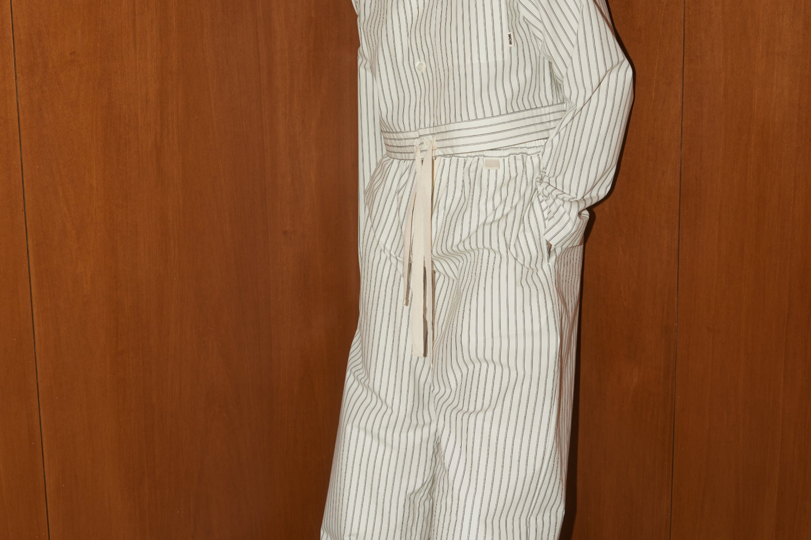 ワイドシルエットのオーセンティックなパジャマパンツ。ウエストにキーループのディティールを施すことでルームウェアとしての枠にとどまらず、「いつでもどこでも」着られるをテーマに独自のバランスに仕立てました。ユニセックスでのサイズ展開でジェンダーや体型にとらわれることなく、着る人の好みのバランスで着用いただけます。