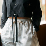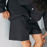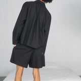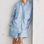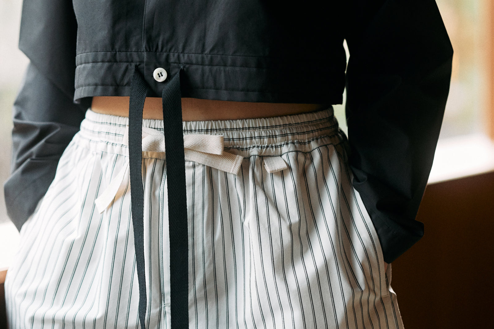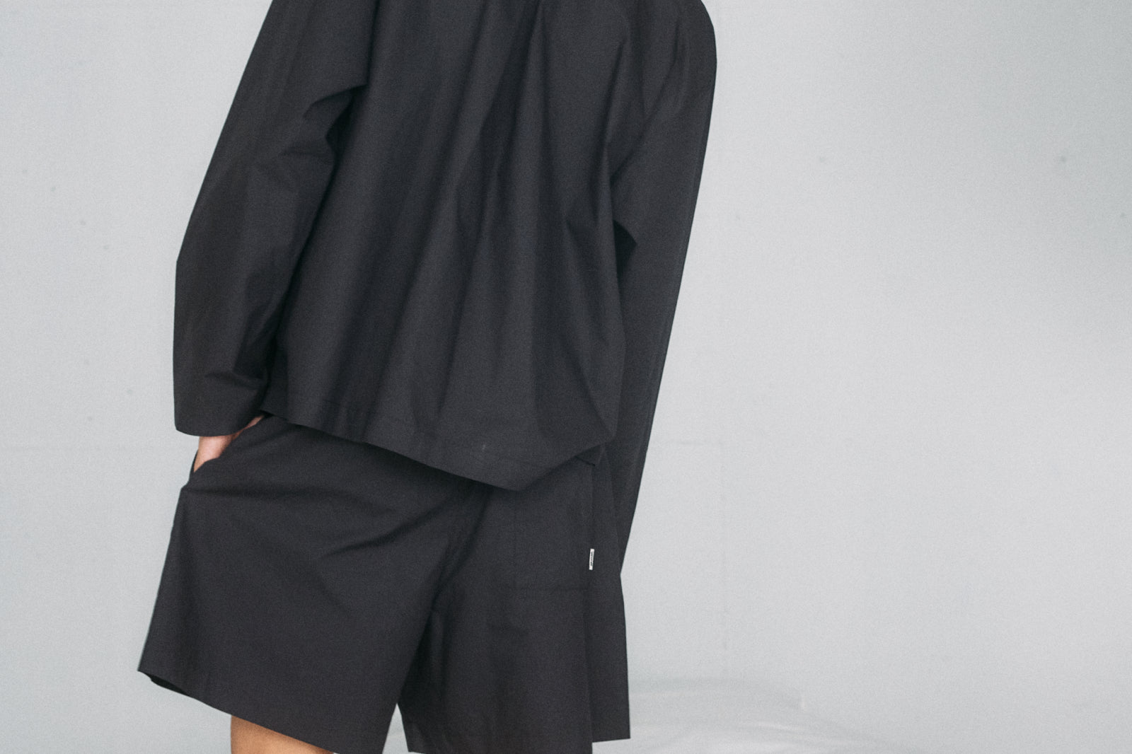 ワイドシルエットのショーツ。ウエストにキーループのディティールを施すことでルームウェアとしての枠にとどまらず、「いつでもどこでも」着られるをテーマに独自のバランスに仕立てました。ユニセックスでのサイズ展開でジェンダーや体型にとらわれることなく、着る人の好みのバランスで着用いただけます。